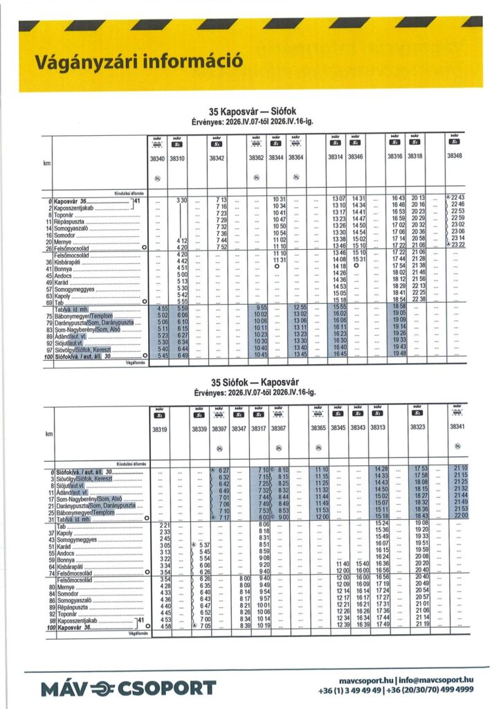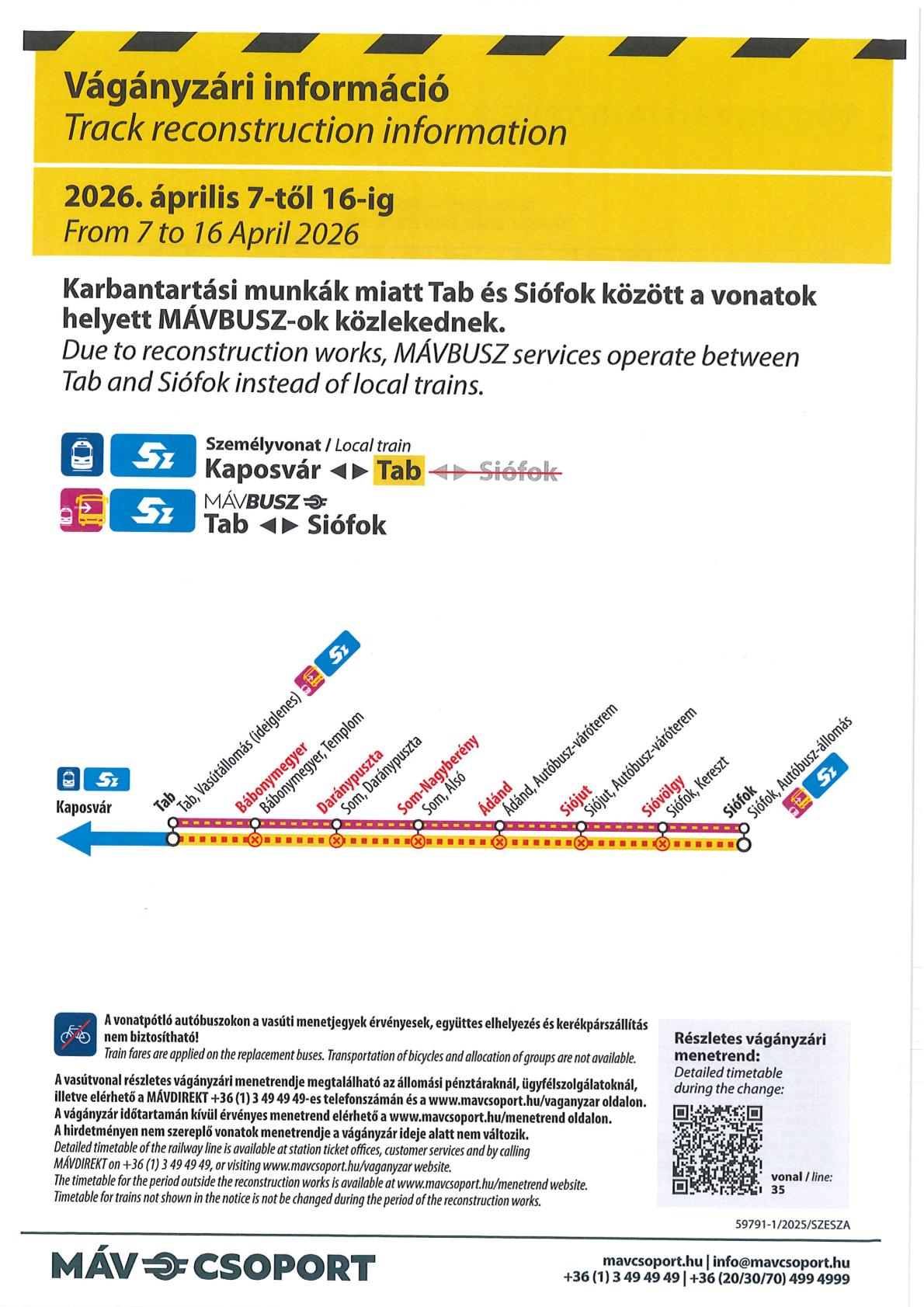 Vágányzári információ karbantartási munkák miatt 2026.04.07-2026.04.16.